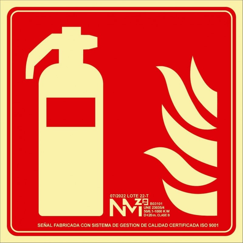 SEÑAL EXTINTOR PVC 0,4mm Clase B 210X210mm